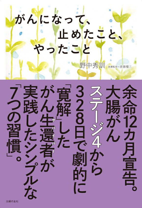NHK番組に「死を前にして人は何を思うのだろう?」をテーマに出演した著者・野中秀訓氏。2014年6月 ガン発覚。46歳、サラリーマンを辞めて独立後9年。紆余曲折を経て、会社も軌道に乗り始め、事務所を移転した矢先に突然の腹痛・・・大腸がん、さらには肝臓、ウィルヒョーリンパ節、大動脈リンパ節転移も見つかり「ステージ4」と告知され余命12か月宣告を受ける。