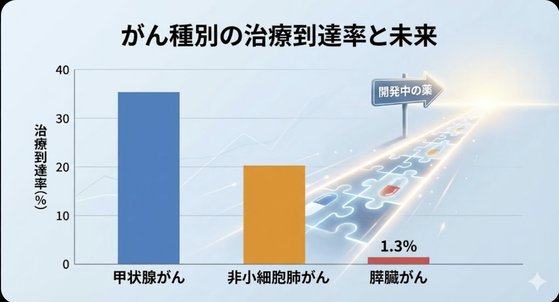 今回の調査で、がんの種類によって「自分に合う薬」にたどり着ける確率に、大きな差があることがはっきりしました。
