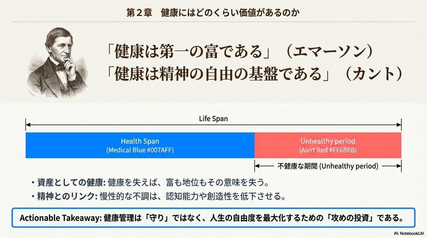 健康は失って初めてその価値に気づくものですが、2500年前のヒポクラテスの時代から「唯一無二の財産」と定義されてきました。がんと向き合う日々において、健康とは単に病気がない状態ではなく、自律して生きるための土台そのものです。この土台をいかに守り、育むかという「健康への哲学」を持つことが、医学的治療を支えるための最も重要な第一歩となります。