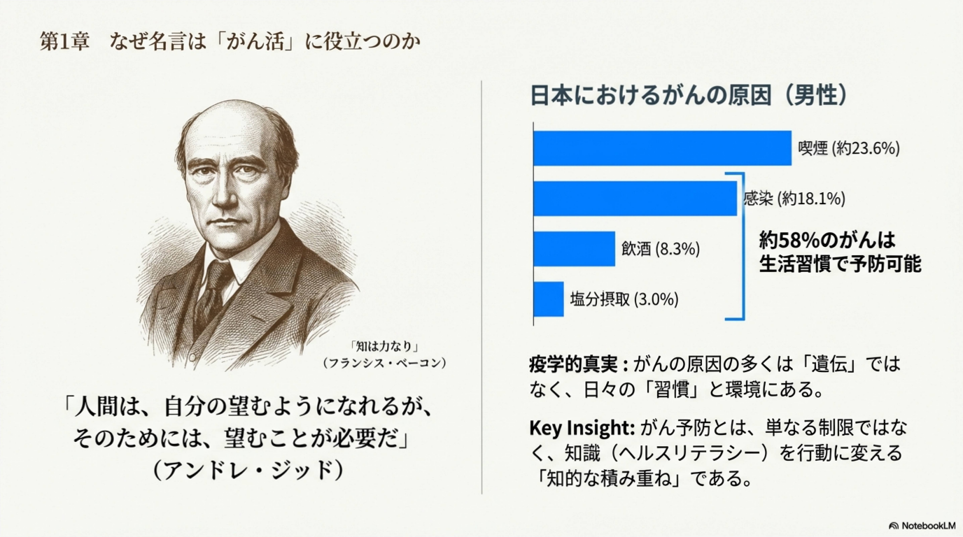 アインシュタインの「神はサイコロを振らない」という言葉通り、がんの発症には明確な科学的因果関係が存在します。最新のゲノム解析によれば、がん細胞のDNAには、過去の生活習慣や環境が刻んだ「遺伝子の傷(シグネチャー)」が記録されています。これは裏を返せば、これからの習慣を変えることで、未来の遺伝子に刻まれるダメージを最小限に抑え、病状の進行をコントロールできるという希望のメッセージでもあります。