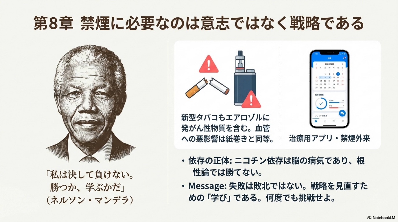タバコはDNAに「SBS4」と呼ばれる独特の破壊の刻印を刻み込み、体内のあらゆる細胞に炎症を誘発します。たとえがんと診断された後であっても、禁煙は遅すぎることはありません。煙を絶つことで血中の酸素濃度が上がり、免疫細胞の活動が正常化され、標準治療(抗がん剤や放射線など)の効果を最大限に引き出すための体内環境が整います。
