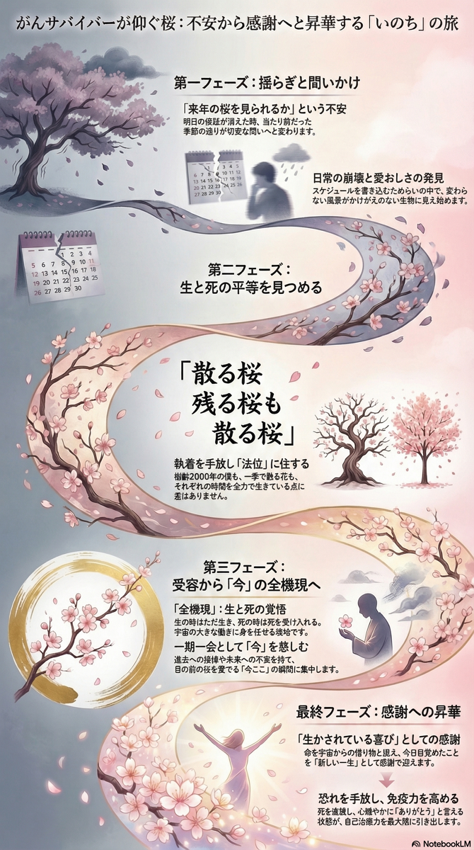 がんを患った者にとって、桜の季節はいつも特別な、そして少しだけ切実な想いを連れてきます。「来年の桜を、私はまた見ることができるだろうか」。そんな問いが、ふとした瞬間に胸をよぎるのです。